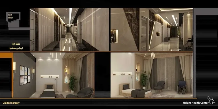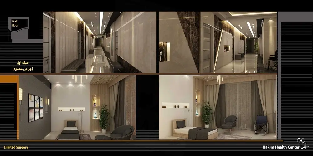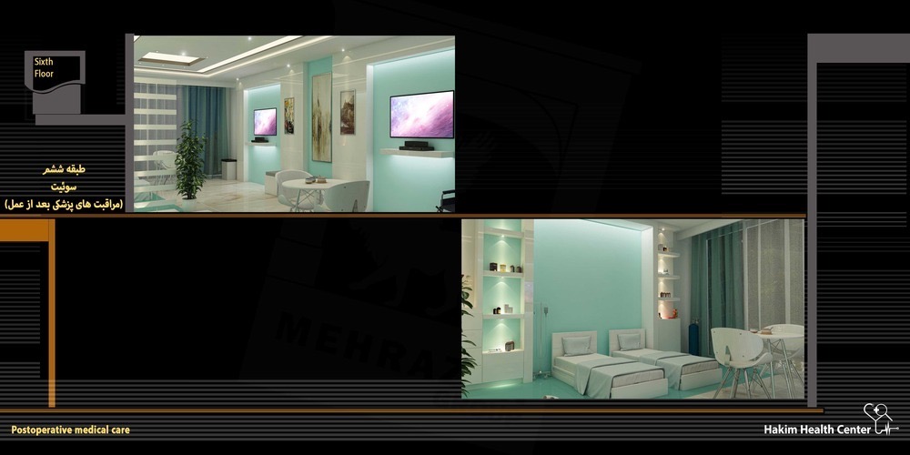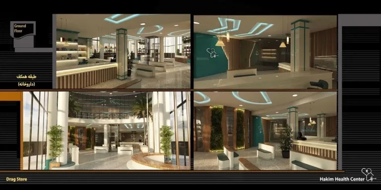 مجتمع درمانی حکیم با کاربری کاملاً درمانی و در 7 طبقه ساخته شده است.